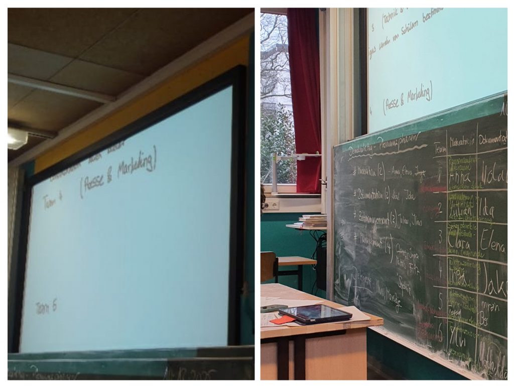 Anschließend gingen wir weiter und besuchten den neunten Jahrgang. Dieser beschäftigte sich damit, Voraussetzungen für individuelles und gemeinsames politisches Handeln zu schaffen – vor allem durch das Erleben von Selbstwirksamkeit und das Übernehmen von Verantwortung.